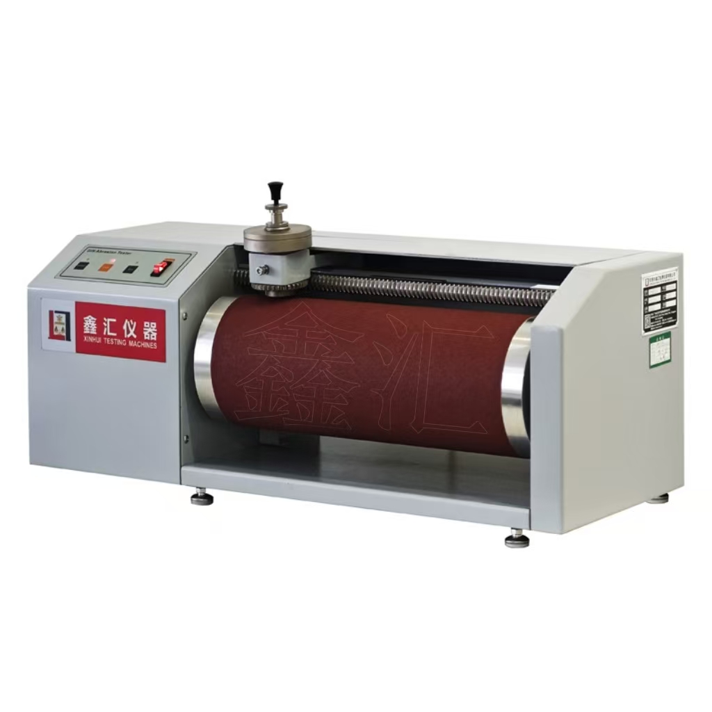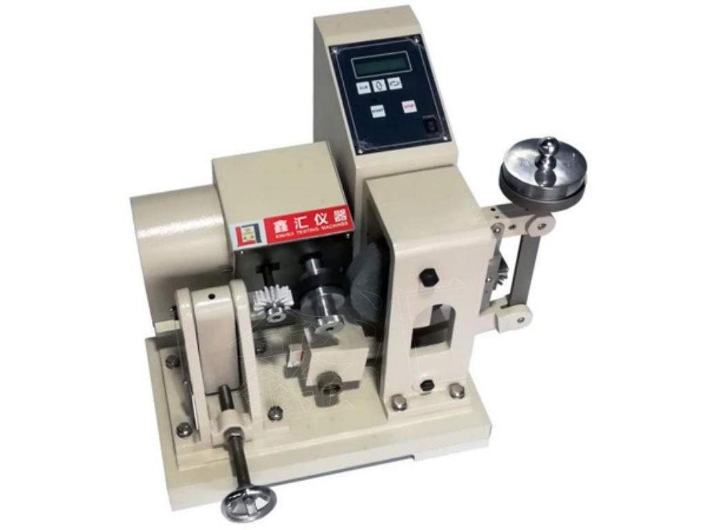 用途及使用范圍: 本機(jī)適用于聚酯鞋底、成鞋鞋底及聚合物片狀材料的耐磨性能. 原理 在規(guī)定的接觸壓力下和給定的面積上,測(cè)定試樣在一定級(jí)別的砂紙上進(jìn)行摩擦而產(chǎn)生的磨耗量. 砂紙包貼在滾筒的表面,試樣緊壓在帶有砂紙的滾筒上,使試樣沿滾筒橫向移動(dòng).磨耗是在圓柱型試樣的一端產(chǎn)生,測(cè)量試樣的質(zhì)量損失值,并由試樣的密度計(jì)算體積磨耗量.